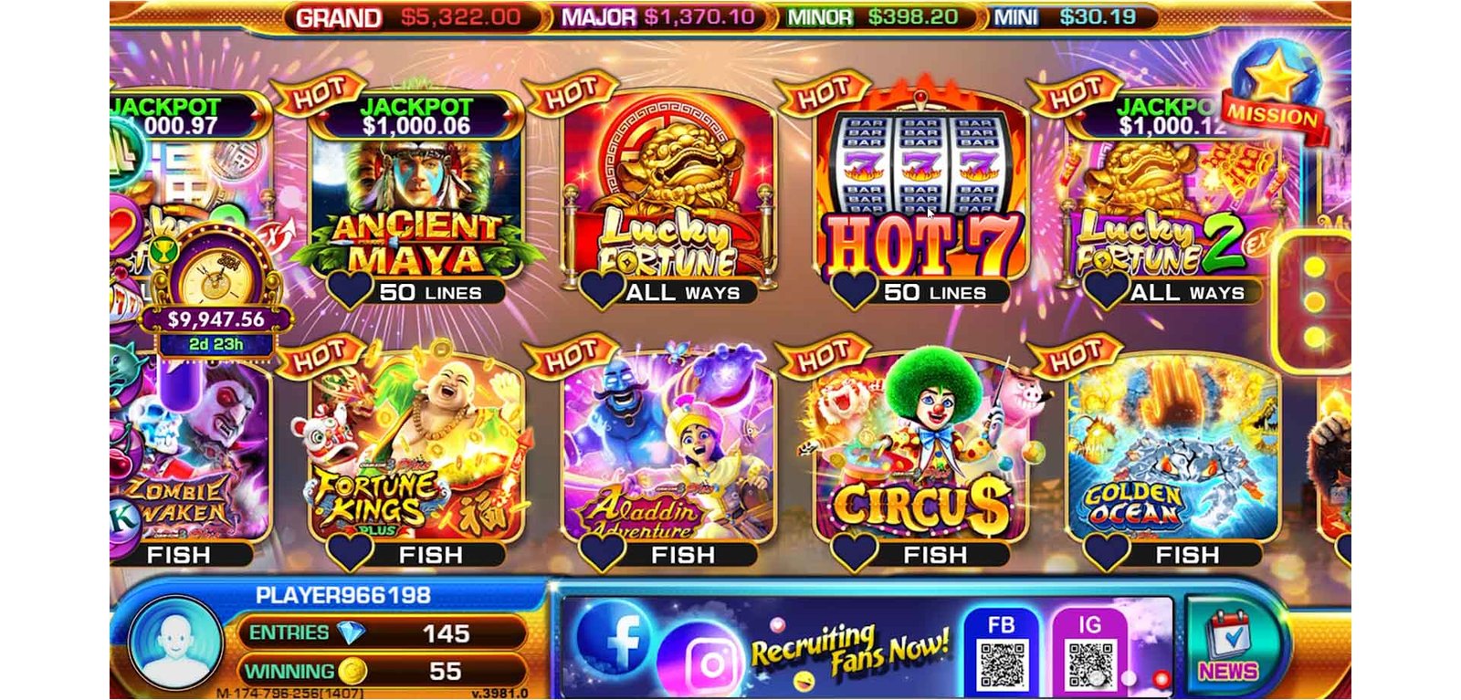 Set the reels on fire with "Hot 7s," a scintillating sweepstake game that combines classic slot machine charm with a modern twist. Immerse yourself in the world of vibrant colors, sizzling animations, and the allure of the lucky number 7. Spin the reels and chase the blazing 7s for a chance to ignite massive wins. With its straightforward yet captivating gameplay, "Hot 7s" is designed for those who appreciate the timeless appeal of traditional slot machines with a dash of golden fortune.
